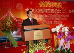 越中友协主席阮春胜在致辞时对中国国庆和中国63年来取得的成就表示祝贺,并强调,越中友协将不断努力,当好两国人民交流的桥梁,为加强两国人民友好合作关系做出贡献。