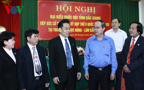 阮富仲代表河内市国会代表团向选民表示接受并高度评价选民就国家重大问题、国会监督活动及即将召开的13届国会9次会议提出的发自肺腑和极富责任的意见。