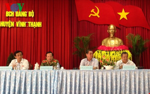 (VOVworld)- 落实13届国会10次会议后的与选民接触计划,越共中央总书记阮富仲及河内市国会代表团12月8日与还剑郡和巴亭郡选民接触,通报会议结果,倾听选民的心声、愿望及建议。