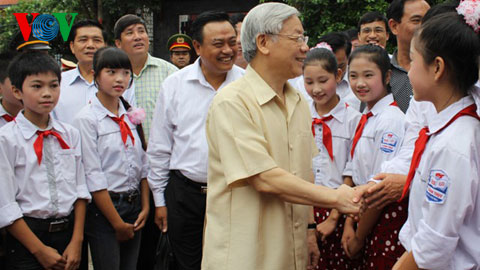 (VOVworld)- 越共中央总书记阮富仲八月二十一日视察北江省,对该省落实越共十一大决议和越共十一届四中全会关于“党建工作当前一些紧迫问题”决议情况进行检查。