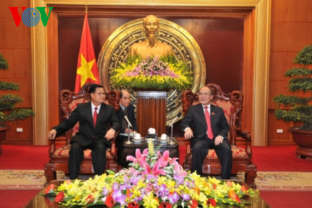 (VOVworld)-应老挝人民革命党中央总书记、老挝人民民主共和国主席朱马里· 赛雅颂及夫人邀请,越共中央总书记阮富仲及夫人率越南高级代表团于四月十二日至十三日对老挝进行访问,并向老挝党政领导人和人民致以传统节日——宋干节祝贺。