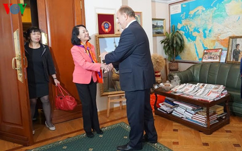(VOVworld)- 正对俄罗斯进行访问的越共中央民运部部长张氏梅14日参观圣彼得堡国立大学胡志明研究所,并与该所所长举行座谈。
