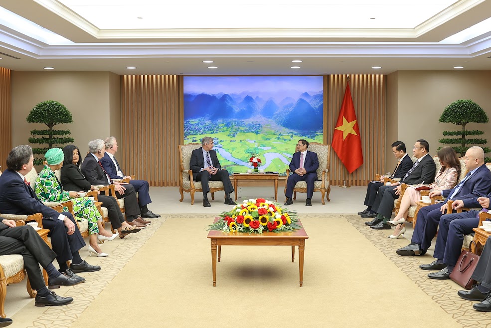 越南政府总理范明政8日在河内会见正访越的美国参议员默克利(Jeff Merkley)及其一行时强调,越南愿与美国一道,在尊重彼此独立、主权、领土完整和政治制度的基础上,继续推进深入、有效和实质性的关系;这符合两国人民的利益,也有利于世界和地区的和平稳定合作与发展。越南愿在互利基础上推动与美方的全面伙伴关系发展。