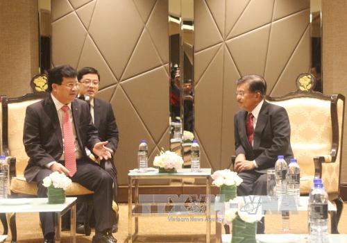 郑庭勇会见印度尼西亚副总统优素福时,双方就推动越-印尼战略伙伴关系日益密切的多项措施交换了意见,旨在为东盟共同体建设做出积极贡献。