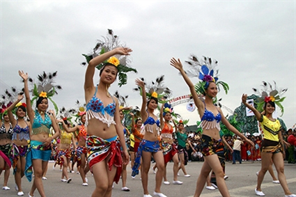 (VOVworld)-广宁省下龙狂欢节将于5月1日在拜斋旅游区举行。今年狂欢节恰逢下龙湾正式获颁世界新七大自然奇观证书之际举行,将成为历年来规模最大的一次盛会。越南戏剧艺术家协会主席、活动总导演——人民艺术家黎进寿透露,下龙市各所高等院校的学生与市民共3200人将参加演出。本次狂欢节具有浓郁的广宁省,尤其是下龙市的文化特色。据此,节日期间将举办有关虔灵文化、海洋文化,以及山由族、岱依族和瑶族等少数民族的民间活动。黎进寿表示:“4月初我们就开始准备,前后排练了10天。除了主要活动外,我们还在各郡、县举行辅助活动。我们将突出展现包括下龙市在内的越南特色文化,如虔灵文化、海洋文化、煤炭文化与民族文化。”