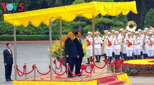 (VOVworld)-正对越南进行国事访问的以色列总统瑞夫林21日下午在河内出席越南TH集团与以色列两家医疗公司的“河内高科技医疗保健综合区”项目协议备忘录签字仪式。