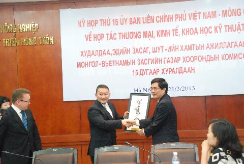 越南农业与农村发展部部长高德发与蒙古工业与农业部部长巴特图勒嘎就双方在2013至2015年阶段的经济、贸易、科技合作前景进行讨论。双方一致同意实施种植业合作项目,同时继续就在蒙古生产饲料和建立蔬菜种植基地进行谈判。