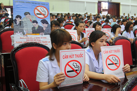 越南卫生部部长阮氏金进在会上发表讲话,呼吁各级各部门、各地方继续实施《烟草危害防控法》,并将禁止在机关、单位的工作场所吸烟纳入规章制度。