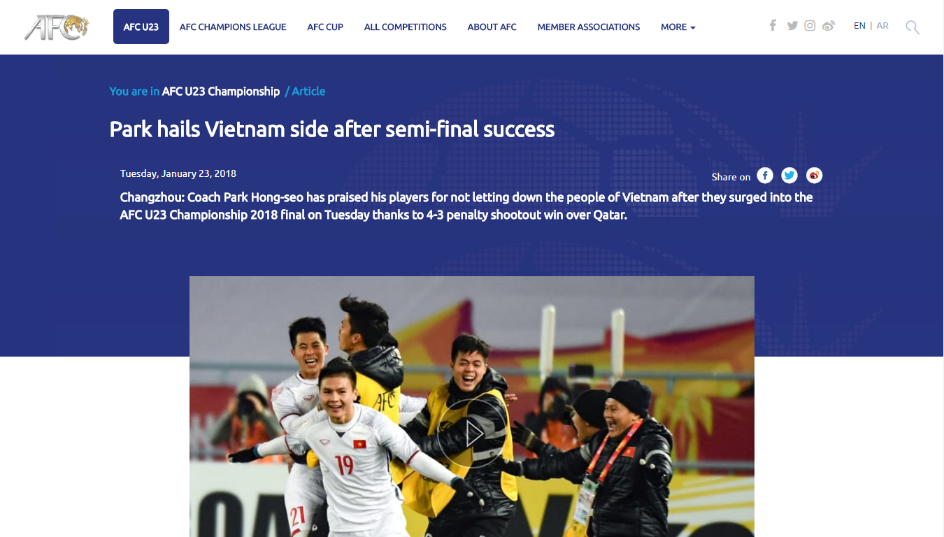 VOV/VOVworld/越南/乌兹别克斯坦/U23/男足/亚洲杯/决赛/举行