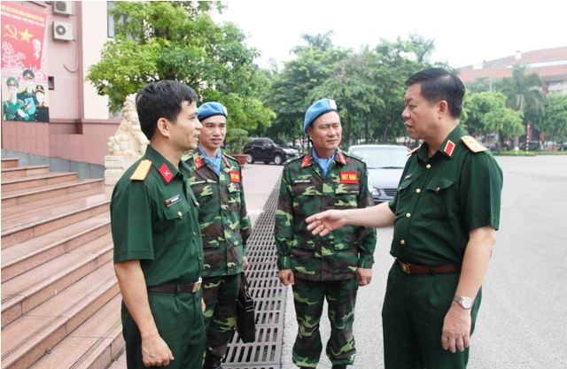 (VOVworld)-越南人民军总政治局副主任阮重义中将6月19日在河内会见、鼓励并向赴南苏丹参加联合国维和行动的莫德仲中校和陈南岸中校交付任务。