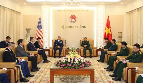(VOVWORLD) - 会见时,奥肖内西通报了美国太平洋空军司令部代表团与越南防空空军部队会谈的结果。双方交流了两国空军今后合作的内容和方向。