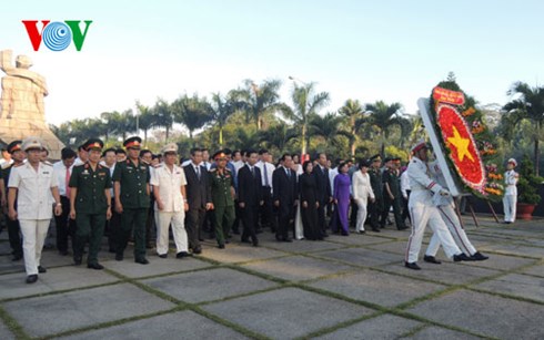 (VOVworld)- 适值7.27荣军烈士节之际,越共中央政治局委员、公安部部长陈大光大将七月二十六日在宁平省烈士纪念台上香,缅怀英雄烈士,并看望慰问该省越南英雄母亲、武装力量英雄和优秀荣军。