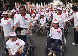 同一天,在胡志明市,5千多名市红十字会志愿者参加2013年“为了橙剂受害者和贫困残疾人”步行活动。