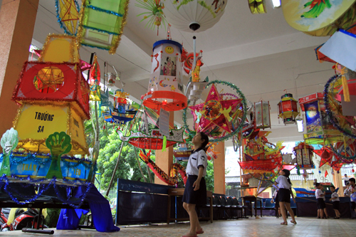 胡志明市第2、第9郡及守德郡的500名家境困难儿童在雄王纪念区参加“2014年月圆之夜” 晚会。孩子们快乐地玩民间游戏、欣赏文艺表演、舞狮等。