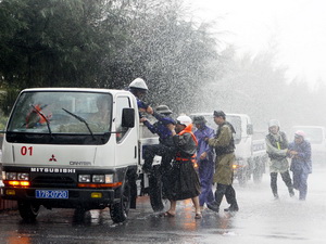 28日晚,海防市边防部队指挥部出动全体人员救护一艘因设备损坏而漂泊海上的渔船渔民,打捞维斯科号(VISCO)货轮上落入海中的六个集装箱。29日凌晨,海防市白龙尾岛县救护队疏散了海上船坞停泊船只上的数百名渔民。海防市边防部队指挥官阮文南说:“面对这种情况,海防市人委要求国家SAR 273号救护船搜救海上渔民。目前,我们正跟踪这艘救护船的行动,并要求吉婆边防站搜救海上滞留居民。此外,我们也关注海防港区情况,因为这里有外国轮船停泊。据悉,28日晨8点30分落海的维斯科号货轮六个集装箱中,有五个是空箱,一个装有货物。”