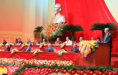 (VOVworld) - 丁世兄代表大会主席团宣读越南共产党第十二届中央委员会第一次会议关于第十二届中央政治局、总书记、书记处、中央检查委员会、中央检查委员会主任选举结果的报告。