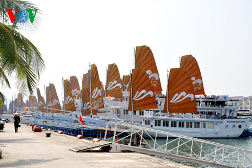 广宁省下龙湾1日上午迎来大批游客。下龙湾在2018新年的第一天共接待1.5万人次游客。2018年是广宁承办国家旅游年的一年,这是广宁省吸引游客旅游下龙湾的机会。