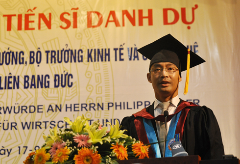 (VOVworld)- 河内国民经济大学17日下午举行隆重仪式,向德国经济和技术部长菲利普·罗斯勒授予名誉博士学位,以表彰他为加强两国友好合作关系,特别是经济、文化、教育和科技合作作出的贡献