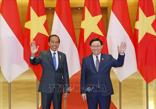 越南政府总理范明政12日在河内会见了正对越南进行国事访问的印度尼西亚总统维多多。会见时,两国领导人对越南和印尼关系在各领域活跃和强劲发展予以高度评价。双方一致同意为两国企业扩大投资;开展《建立公正能源转型伙伴关系协议》(JETP)框架内的合作项目创造便利条件。