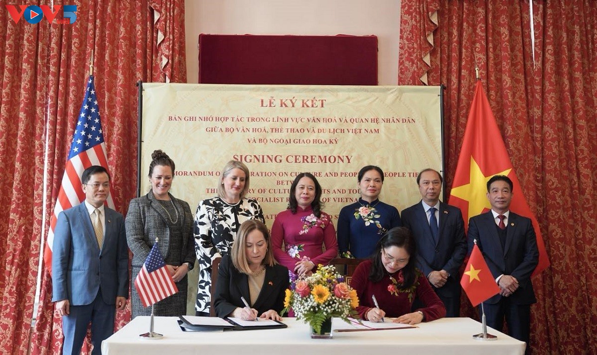 正对美国进行访问的越南国家副主席武氏映春13日会见了美国负责公共外交和公共事务的副国务卿利兹·艾伦(Liz Allen),并见证越南与美国文化与民间合作谅解备忘录的签署。