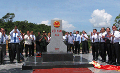 (VOVworld)- 越南政府总理阮晋勇和老挝总理通辛·塔玛冯7月9日在越南义安省清水口岸和老挝波里坎塞省嫩恩口岸共同主持越老完成边界界碑实地增密加固工作庆祝仪式暨460号界碑揭幕仪式。