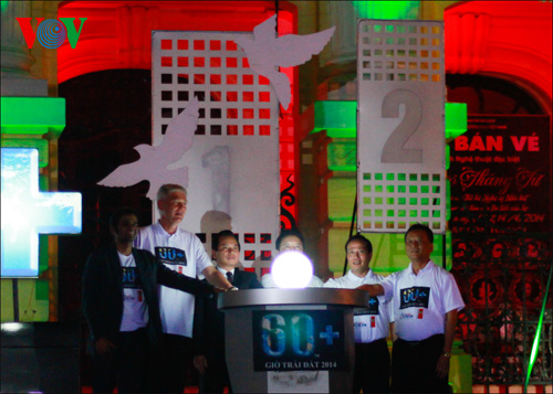 在河内八月革命广场,资源环境部、工贸部、河内市人民委员会等的代表和丹麦驻越大使在响应2014年“地球一小时”活动启动仪式上共同按钮熄灯。该活动旨在筹集改善环境质量项目资金,改变人们的环保意识。
