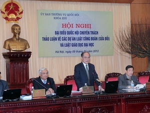(VOVworld)- 会议就呈交国会第八次会议审议通过的六项法律草案中的一些重要问题进行讨论和提供意见