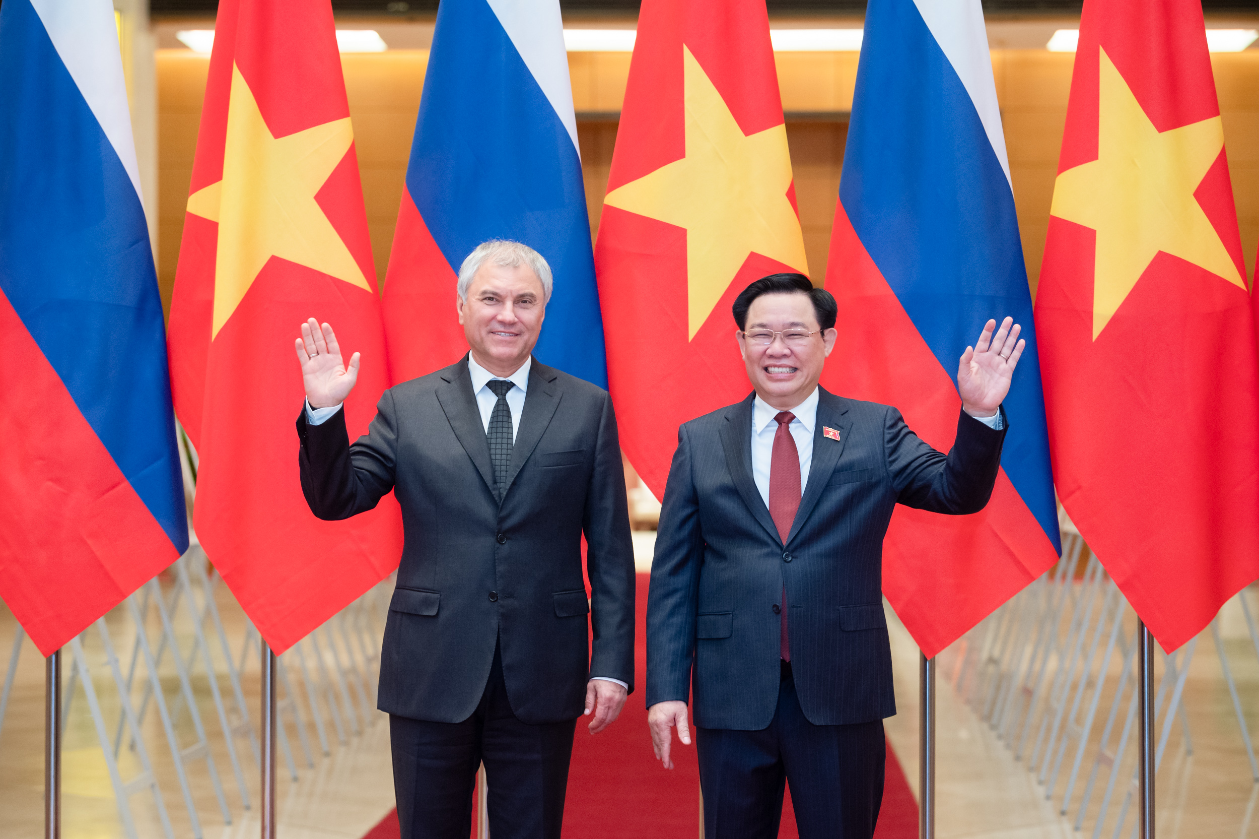 越南国会主席王庭惠会见韩国SK集团董事长崔泰源。