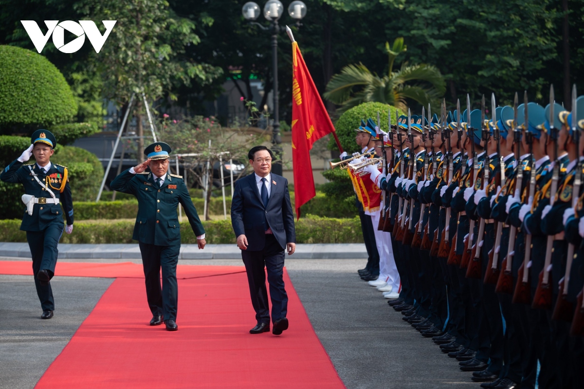 (VOVWORLD) - 越南国会主席王庭惠10月27日在国会大厦会见韩国SK集团董事长崔泰源(Chey Tae-won)。