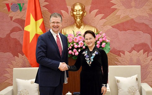 越南国会主席阮氏金银9日在国会大厦会见了美国驻越大使丹尼尔•克里滕布林克。