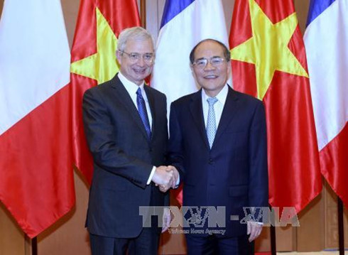 | 越南国会主席阮生雄和法国国民议会议长巴尔托洛内。图片来源:越通社 |