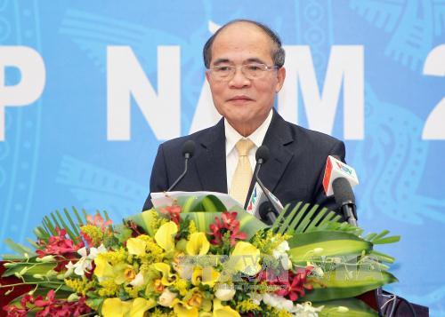 适值2016年丙申春节来临之际,阮生雄祝愿“越南国会大家庭”全体成员新年健康、幸福、成功。