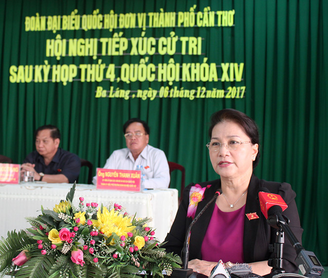 越南国会副主席丛氏放2日与山萝省木州县选民接触。