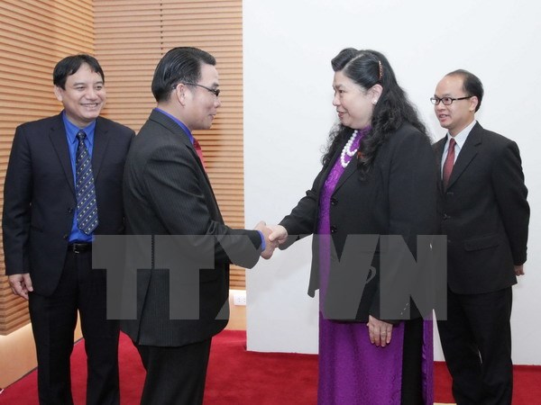 越南国会副主席丛氏放会见老柬两国青年代表团