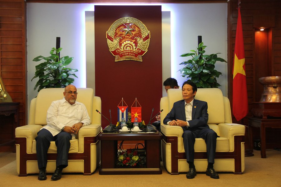 越南国会副主席汪朱刘(右)会见古共中央政治局委员、古巴国务委员会委员、古巴全国人民政权代表大会代表乌利塞斯•吉拉特•德纳西米恩托 |