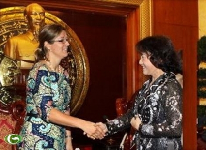 (VOVworld) - 越南国会副主席阮氏金银12月23日和24日率领国会工作组视察广义省。 她在与广义省领导人座谈时指出,除了发展工业和服务业外,该省还要重视加快贫困县份的扶贫减贫进程。 视察期间,阮氏金银副主席还看望政策优抚家庭,参观已故总理范文同纪念馆,看望沙奇口岸边防站战士,并向他们赠送礼物。