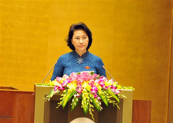 (VOVworld)- 在越南第十四届国会第一次会议7月21日下午的会议上,第十三届国会主席阮氏金银代表第十三届国会常委会做关于选举国会主席、副主席和常委会委员人事方案的国会代表团讨论结果和国会代表意见说明采纳报告。