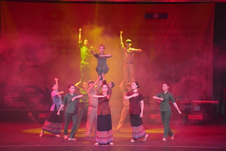 同一天晚上,在老挝万象,越南人民军第七军区文工团举行艺术表演活动,庆祝越南国庆72周年和2017越老、老越团结友好年。老挝国防部长占沙蒙、越南驻老大使阮伯雄和老挝人民军指战员、旅居万象越南人观看了表演。活动上表演了由两国音乐家创作的歌颂两国风土人情、两国人民和军队团结友谊的歌舞节目。(完)