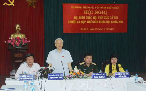 (VOVworld)- 落实越南第13届国会第9次会议召开前夕与选民接触计划,国家主席张晋创同胡志明市第一选举单位国会代表和该市国会代表团5月16日与第一郡选民接触。
