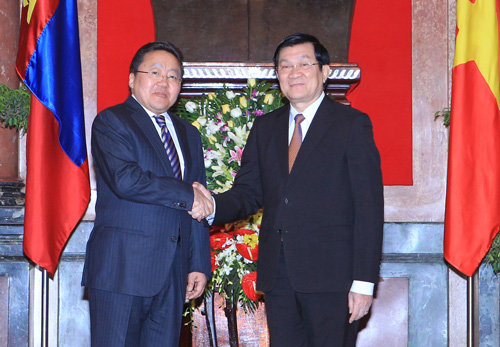 (VOVworld)-越南国家主席张晋创4月16日在主席府会见到访的蒙古总检察长丹木比·道尔利格扎布。