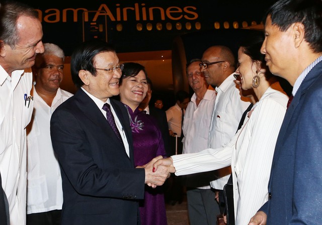 (VOVworld)- 越南国家主席张晋创和夫人及其一行圆满结束对古巴的正式访问,于九月三十日下午离开哈瓦那。此行是应古巴国务委员会主席兼部长会议主席劳尔•卡斯特罗邀请于九月二十八日至三十日进行的。