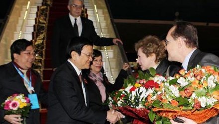 (VOVworld) - 越南国家主席张晋创及各国领导人和代表5月8日晚共同出席由俄罗斯总统普京主持的反法西斯战争胜利70周年招待会。