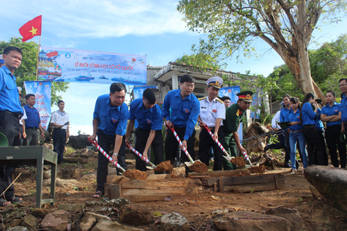 在越南坚江省土珠岛动工兴建国旗杆