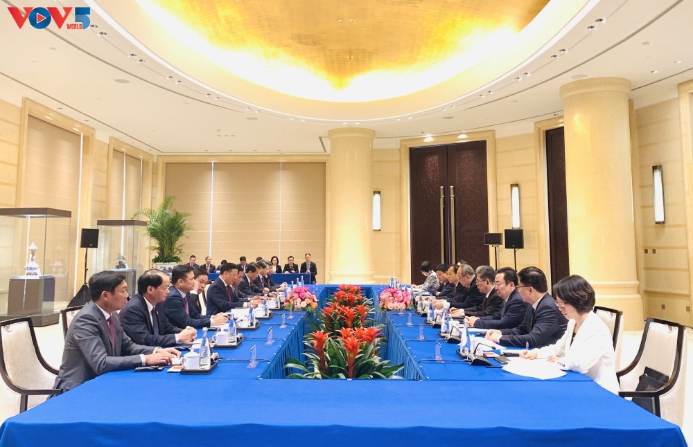 河内市工作代表团礼节性拜会中国全国政协主席王沪宁