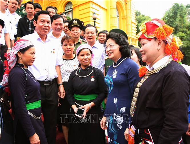 越南国家副主席邓氏玉盛视察老街省