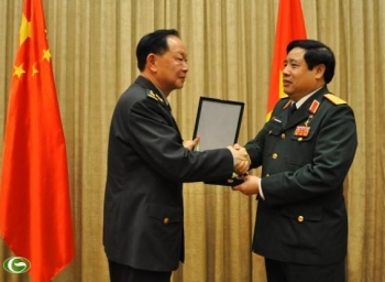 越南国防部长冯光青会见中国国防大学代表团