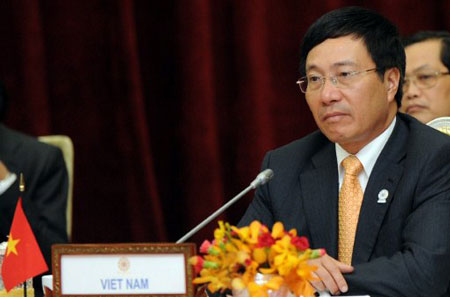 会议期间,范平明先后会见了中国、加拿大、巴基斯坦、朝鲜等国外长,就会议的重要问题及双边问题进行讨论。在与中国外长杨洁篪的会见中,两位外长就推动越中全面战略合作伙伴关系问题交换了意见。双方同意继续保持两国各级互访,特别是高层互访,促进两国友好交往和全面合作。关于海上问题,双方强调,应在互相尊重、照顾彼此的正当利益基础上,根据两国领导人达成的共识和指导解决越中海上问题基本原则协议,通过和平谈判和友好协商解决一切争端。