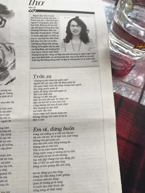 夏露用越南语创作的两首诗在越南《前锋报》2017年2月14日期上发表。(图片来源:夏露提供)