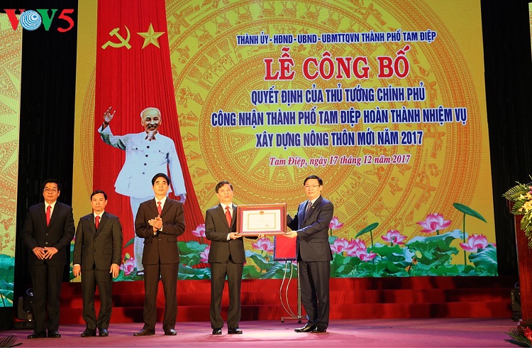 王庭惠在仪式上发表讲话认为 : “创造生计,提高居民的生活水平和收入是新农村建设的最基本因素。我们对南定省在开展新农村建设后,农民的生活水平和收入比之前增加3倍表示赞赏。这是令人瞩目的成绩,新农村建设必须与重组农业结构、发展农村经济相结合。重组农业经济结构就要重新组织生产,打造新合作社经济模式和应用科技发展农业和农村经济”。