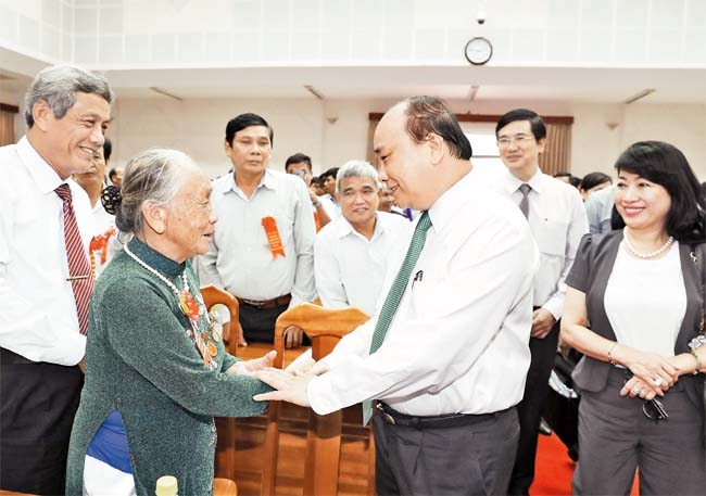 越南政府总理阮春福与越南英雄母亲交谈 |